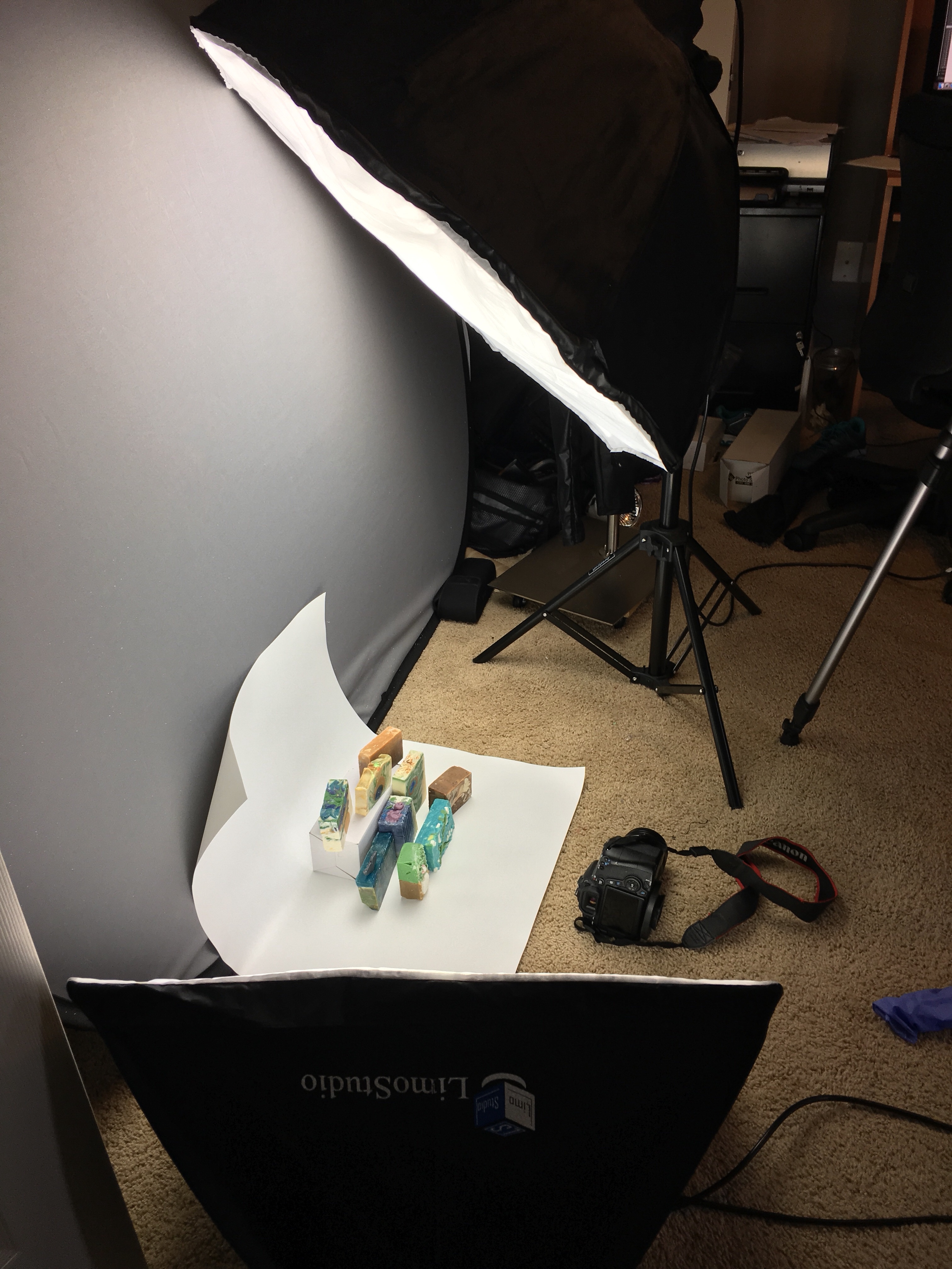 Lastly, if all of this sounds too complicated or difficult, and you would prefer to spend your time making soap; consider hiring a photographer. If you have a consistent line of product that would only need to be photographed once (or only once or twice a year), it may be cheaper going this route than buying the equipment yourself and spending all that time learning to use it. Also, you may be able to get nice pictures at a decent price with a student of photography initially or someone who is starting out. You may be able to trade services for soap too!