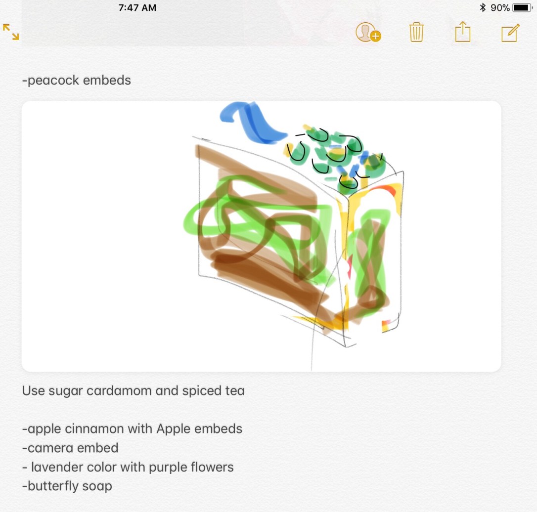 Sometimes I list the soap idea as text only, most often I like to add a sketch. But I have also added pictures I have taken of a magazine or such. Be careful, do not try to brainstorm and come up with a bunch ideas at once. Just add the ideas as they come to you, from “inspiration”. Otherwise it can feel like a “to do” list, rather than a fun idea list.