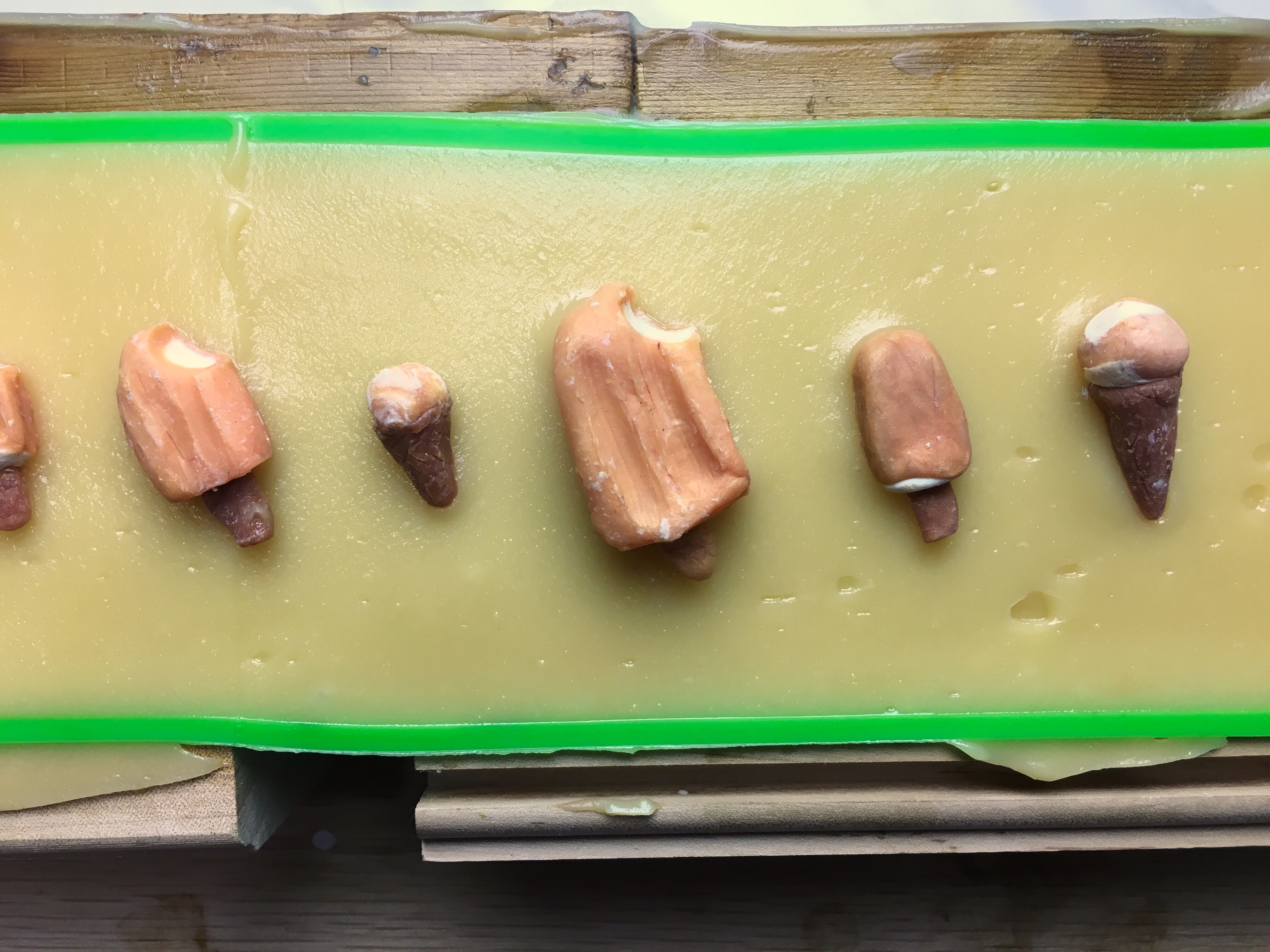 Before attempting the soap, I got curious as to who came up with the idea of creamsicles, and I found it was not a straightforward answer. As per this page, Frank Epperson came up with the idea for popsicle and patented it. Having made one by accident when he was a boy (left his drink outside overnight, and it was frozen the next morning.) However, creamsicles have an ice cream core, which is something that Chris Nelson invented. Though he originally made it with chocolate. The story can be found here, he came up with the idea after seeing a little boy struggle to make a decision between buying chocolate or ice cream at his shop. So he thought, why not put them together, but it was not as easy as it seems. It is a long story, but after some lawsuits and acquisitions, Unilever now owns both popsicle and creamsicle patents.