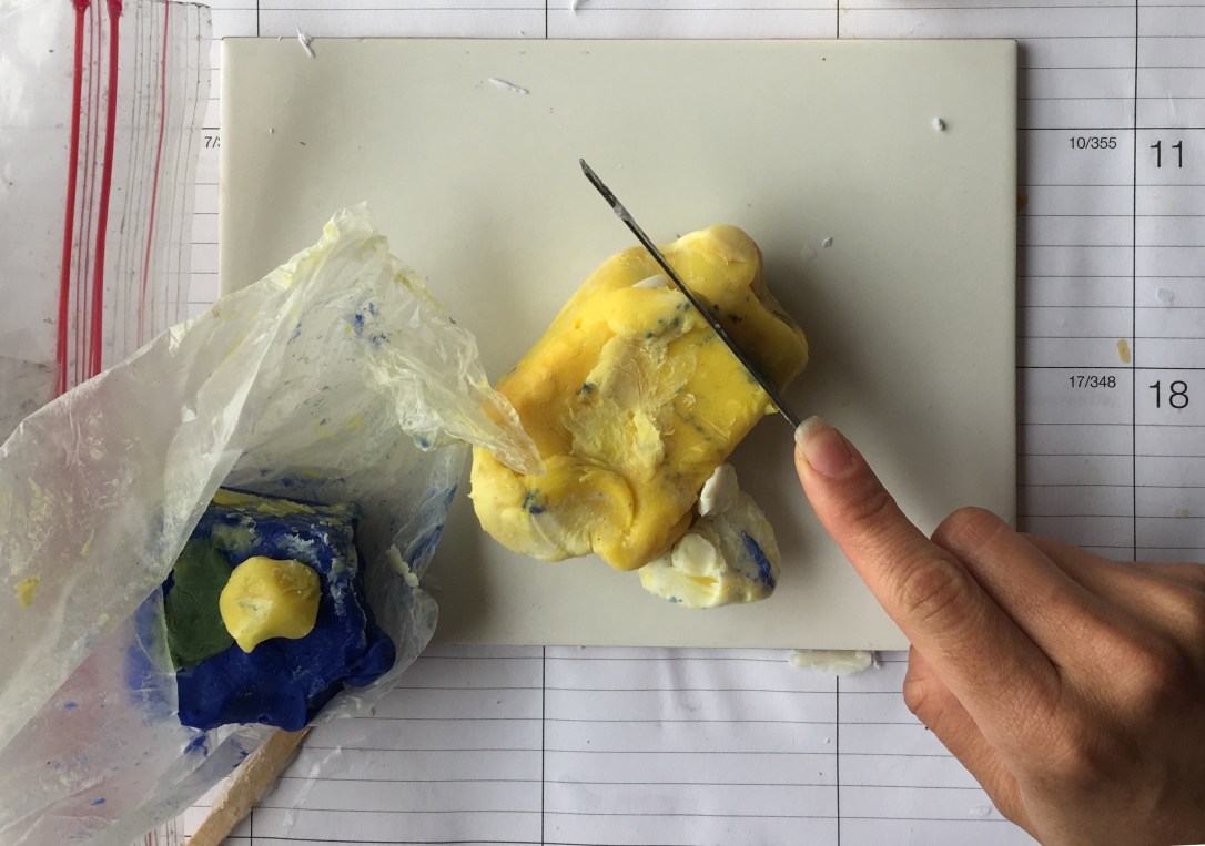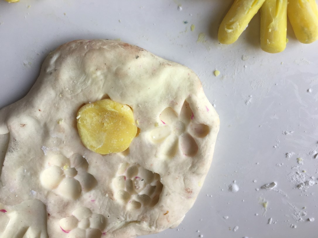 - Soap dough in any colors you wish (I have white, yellow, blue)