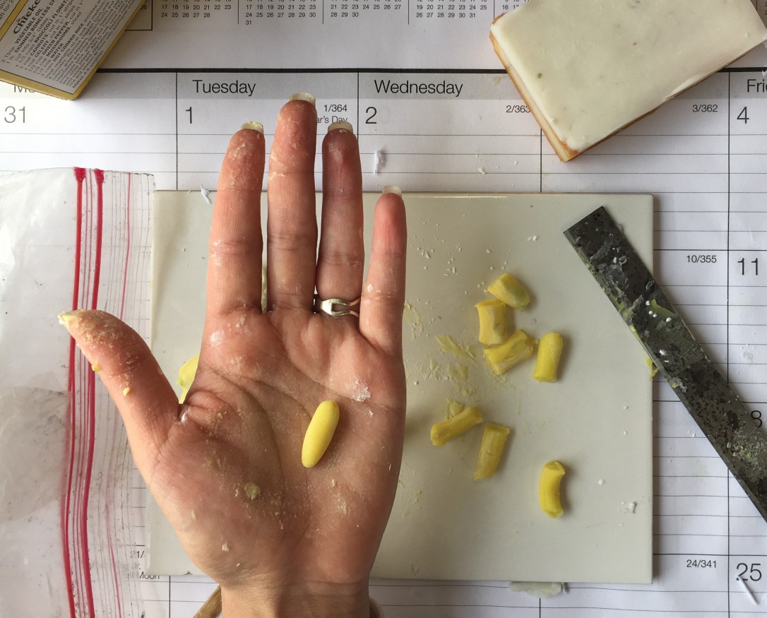 In this video, I show you how to make them with small soap balls. Here is a variation of it with “rice grain” shapes instead. I suggest you work bigger first, and as you become familiar with the process, go smaller.