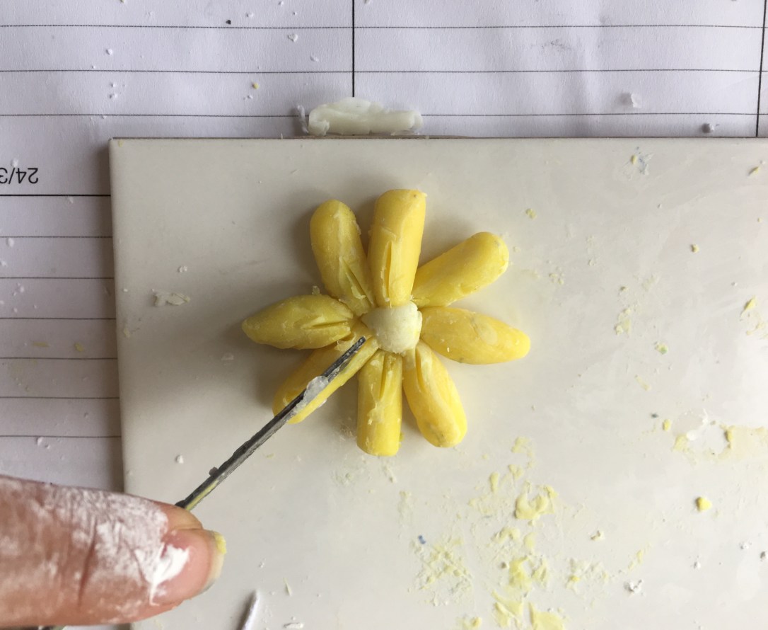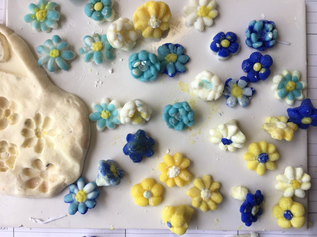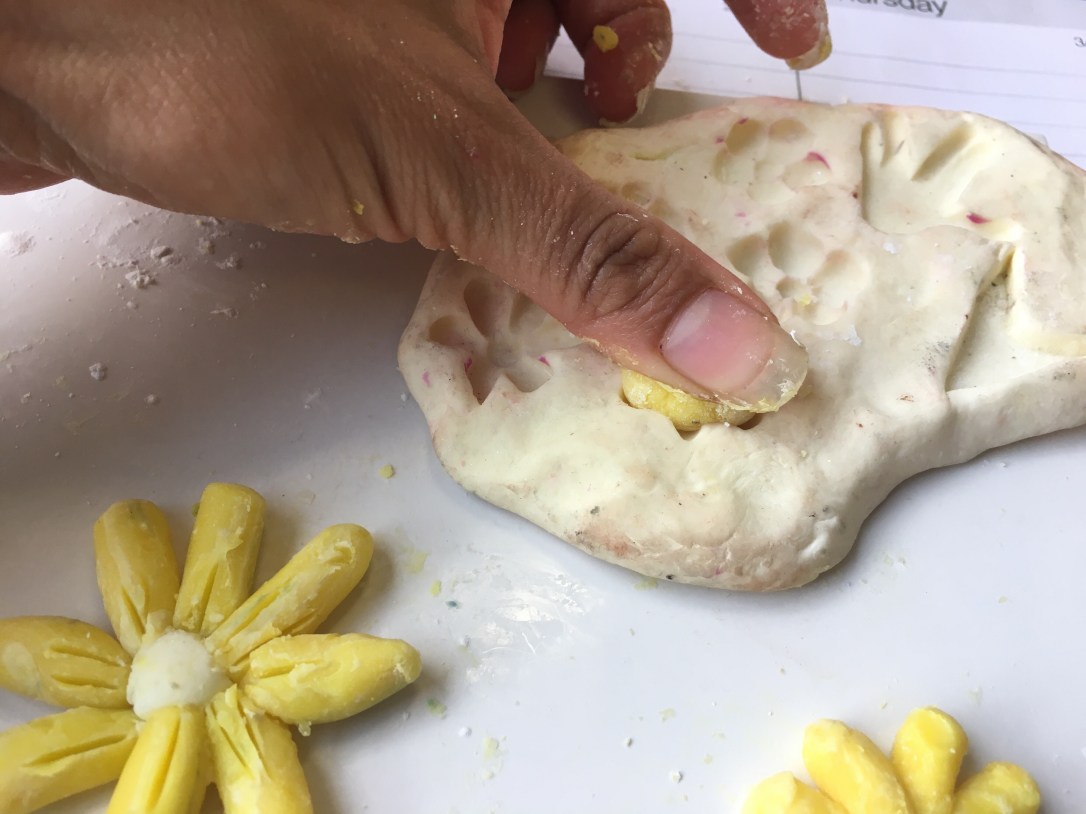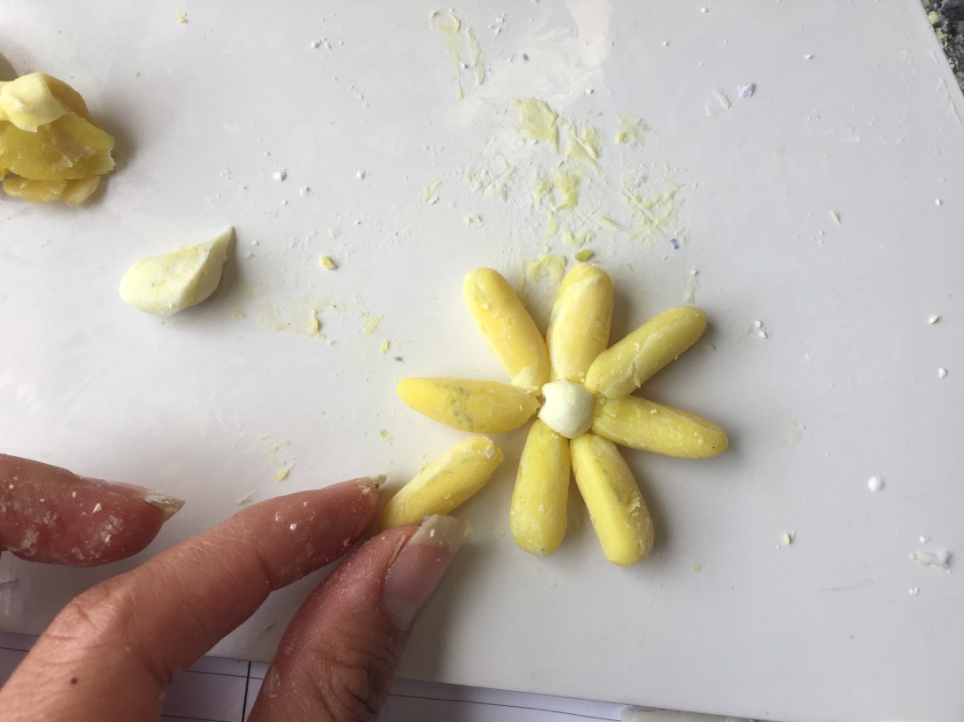 - For the core of the flower, pick a tiny piece of soap dough in the desired color