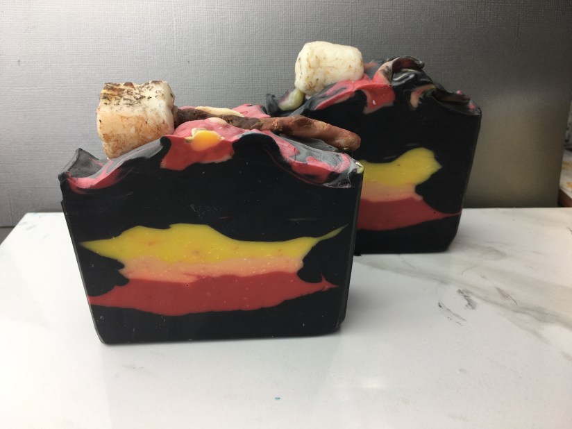 This soap was sadly not successful in the design execution. It was supposed to be a pointy layer technique, but I got not points! It was a shame, as calculating the right amount of soap batter for each layer was a very precise exercise. But I guess you cannot always win.