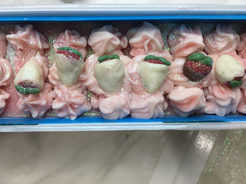 - I will include the video of the strawberry making below, you would just need to roll a thin sheet of white or brow soap dough and wrap it around it to make it “chocolate covered”.