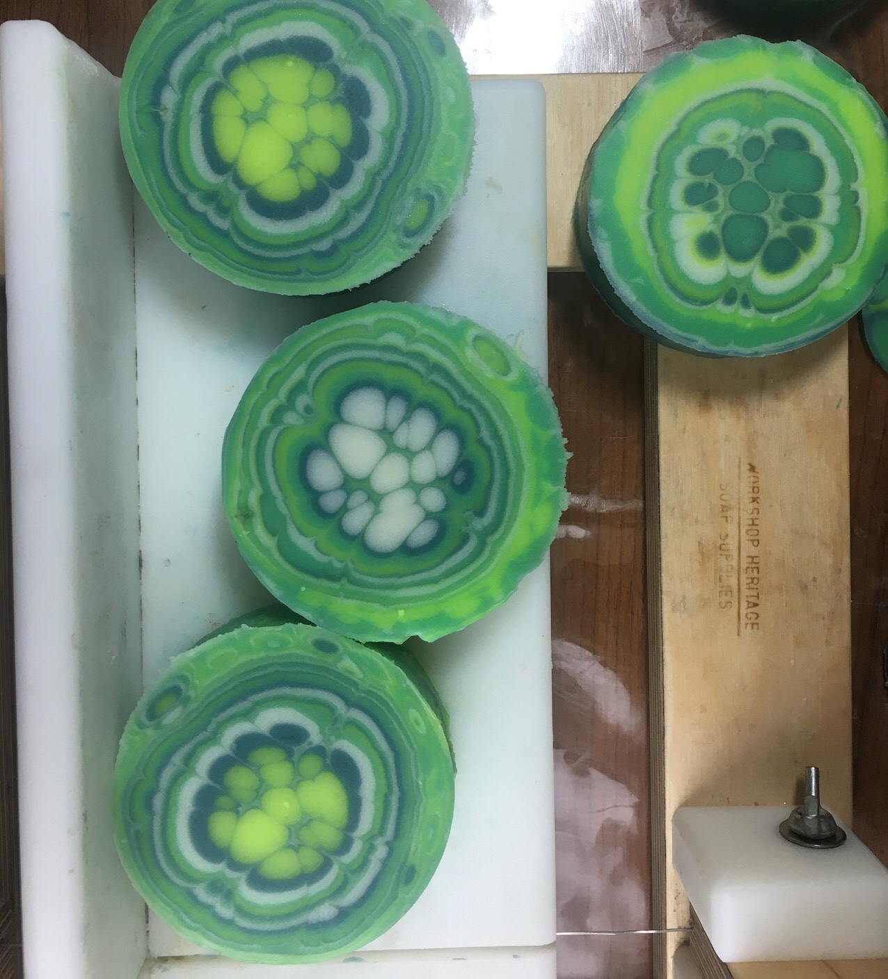 When a soap does not turn out as expected, I usually end up embellishing it. Lately I have had a lot of soap design fails, especially when experimenting with pull screen discs. So I have gotten to practice my post decorating skills a lot. It is actually very easy. Especially if you have soap dough that turned out to be sticky. That stickiness or extra moisture really does help it adhere to a new bar of soap, and I use it as a glue too, for other embeds.