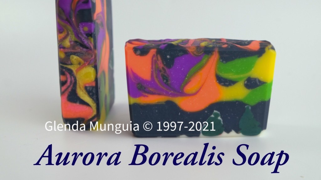 Last year I started watching a multi talented artist in YouTube. She is from Sweden and is a painter, photographer, singer, musician, etc. Several of her videos include footage of the Aurora Borealis, and that was partially what inspired me to make this soap.