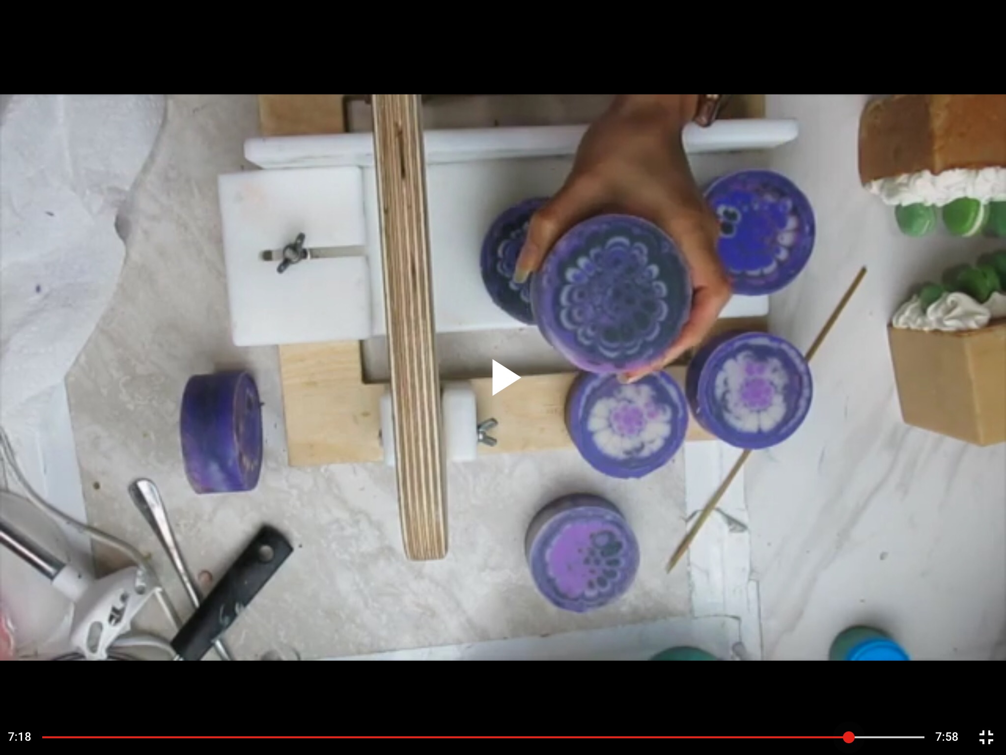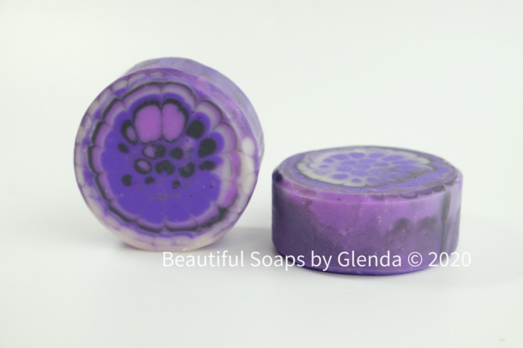 This was also another first for me, I used the first pull screen disc I made with a 3d printer. I think I should try using this disc again with the colors of a sunflower. This was also my first soap that was entirely purple. Prior to this soap I had used purple as an accent color, but not as the main color in a soap.