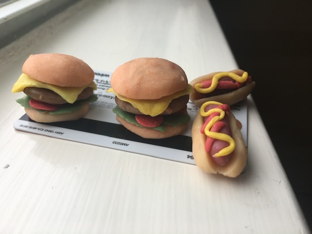 I made the embeds with Soap dough. The video shows the process for the hamburgers.