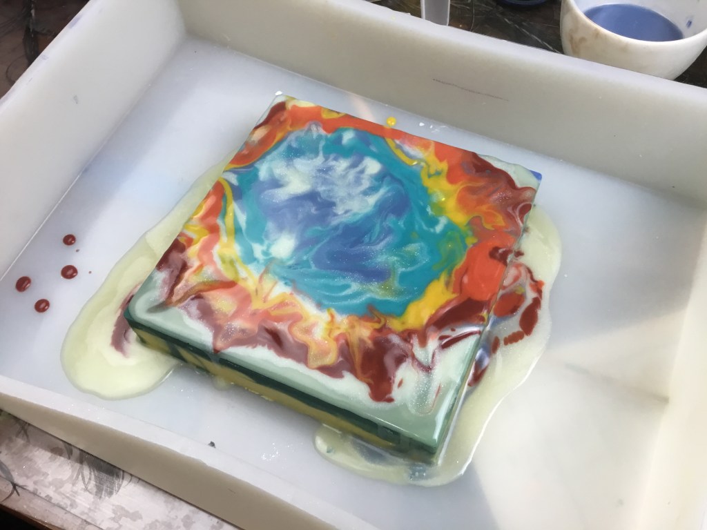 Like it usually happens when I see something cool, I want to turn it into a soap. So I wrote it down in my soap idea list and took a picture of the screen, I was apparently watching this on 12/31/2020 while washing dishes, usually I would be anticipating the new year with my family but you know how 2020 went. Then in March of this year, the soapmaking forum hosted a challenge about the Dutch Pour technique, which is a technique from the painting world. I knew right away it would be an ideal technique to accomplish this soap. You can see all of the entries from the challenge here.