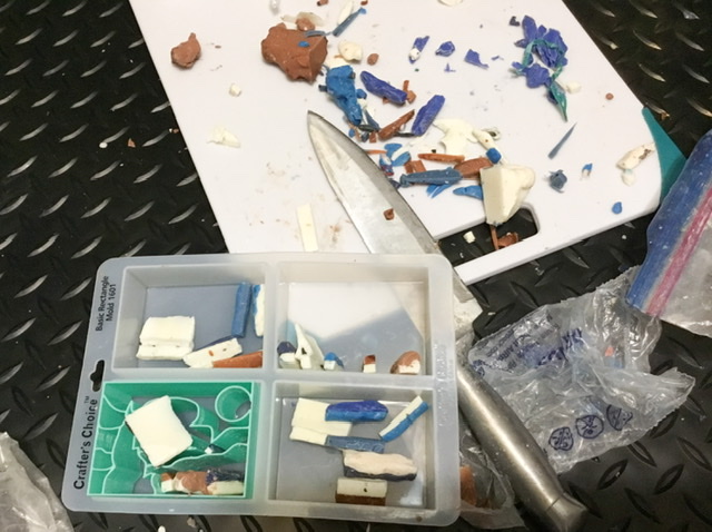 Overall I was happy with how the idea worked. However I did not like the colors as much. So I attempted 3-D printing a new divider, and I tried another small batch with it, this time I used a 40% lye to water concentration (my standard lye master batch ) and also did the following changes: