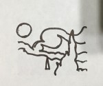 Since this is happening on the back of the paper, it is reversed. I can flip this easily later in the software. I did several adjustments and once I converted it to a 3-D printing file, I realized it would take too long to print: 9 hours! That won’t do, so I made the lines thinner by drawing them in the computer. It says it will take 5 hours now, that’s more manageable. I had to simplify the painting so that it would work at such small scale.