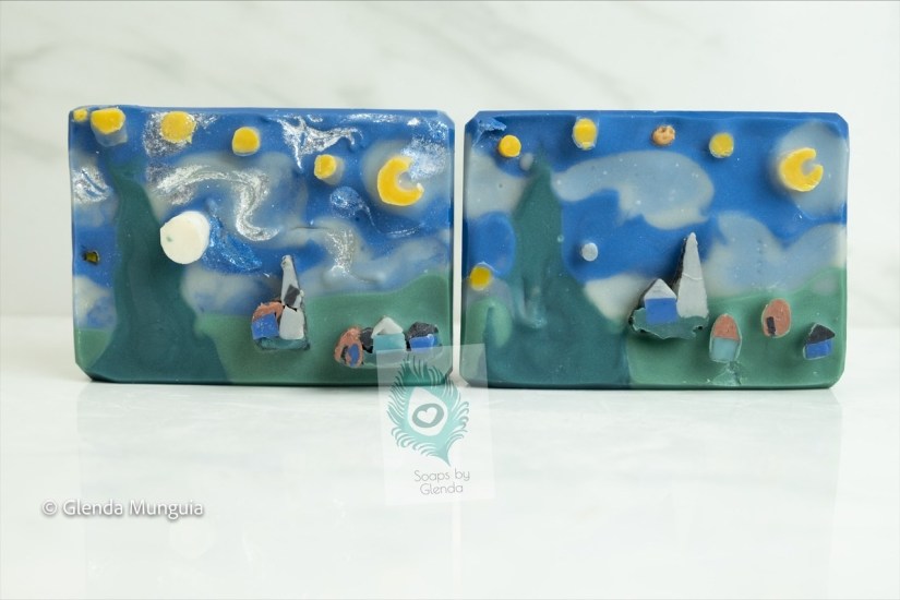 Lately, I have been contemplating the idea of making dividers for scenic soaps, rather than using the sculpted layers technique (soap scrapers). I have come to realize that I lack the patience needed to do the sculpted layers technique, even when I have tried it with an accelerating fragrance. With a divider, It seems it would be faster than waiting for layers to set up enough to be scraped, as everything would be poured continuously. It occurred to me that the starry night Painting might be a good test for this idea. If it works, it would give most people the opportunity to make a painting style soap regardless of their painting abilities, it would sort of be like a painting by numbers tool. And I could also redeem myself from my previous attempt.