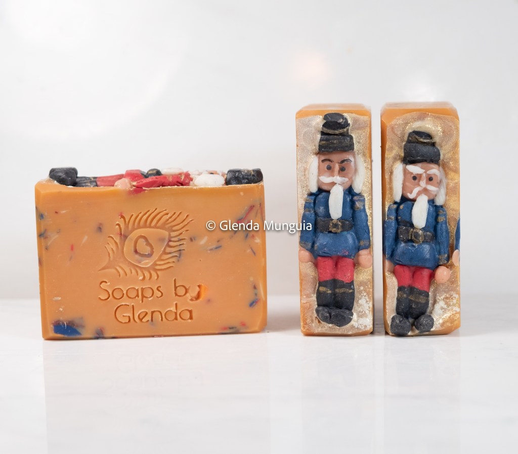 Like the Sugar Plum Fairy Soap from last week, I wanted to revisit the Nutcracker soap from a couple years ago. I made a new mold of the embeds with proper silicone (not that caulking silicone is bad, the new one just stretches more/better.) and I tried to keep it simpler, since it can be a time consuming embed.