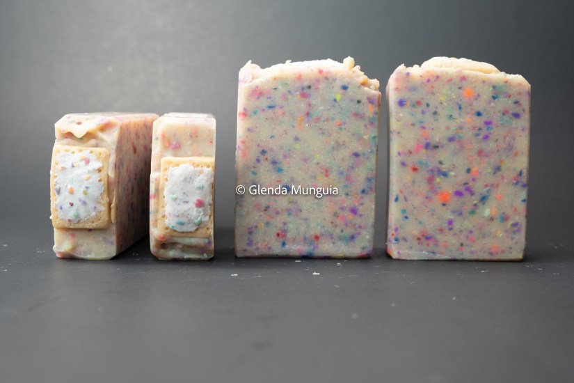 These are some soaps I made earlier this Spring, inspired by a pop tart I was eating. Something I try not to do often. It was not until a few years ago that I realized how many calories pop tarts have! Sometimes ignorance is indeed bliss. When I was younger I did not have to worry about calories or anything of the sort. I enjoyed an efficient and wonderful metabolism up until my early 20’s. Let me tell you, being very skinny is not all that is cracked up to be. People stare, a lot, often wondering if you are doing drugs (or so I imagined). They also feel the need to talk about it. They would tell my mom, “she is so skinny!”, like if I was a really young child and could not understand. That is probably why my mom was so worried about us. I remember she used to buy Ensure (a meal replacement drink) for us to drink in addition to our meals. I remember a coworker jokingly tell me “I hate you” when she saw me drinking it. But I truly enjoyed it, and enjoyed eating lots of food without any guilty feelings. It was a good run!