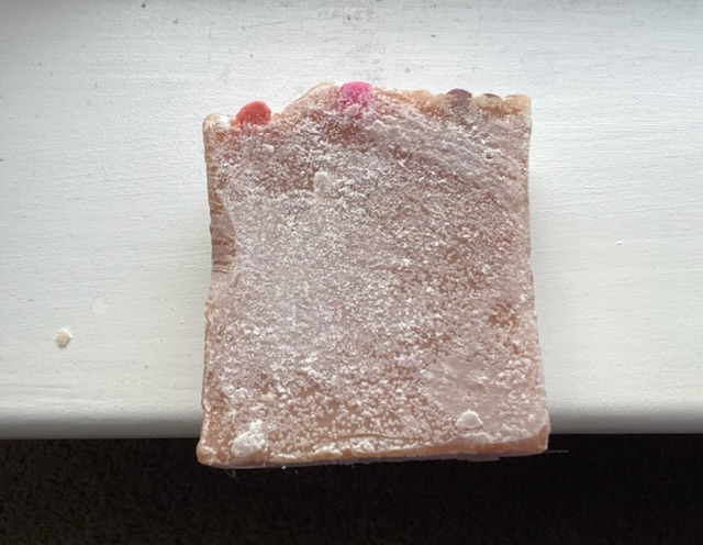 I also had proper DOS in this soap. I don’t think I took a picture of it, but there were distinct small orange spots in it, and I remembered that I also used the grapeseed oil in it.