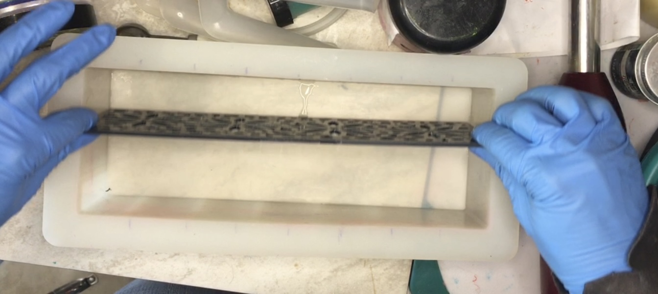 - When done pouring, pull the dividers out, scrape carefully any leftovers clinging to the divider. If you did not add the screen prior, add it now. Position it along one of the long walls of the mold carefully.
