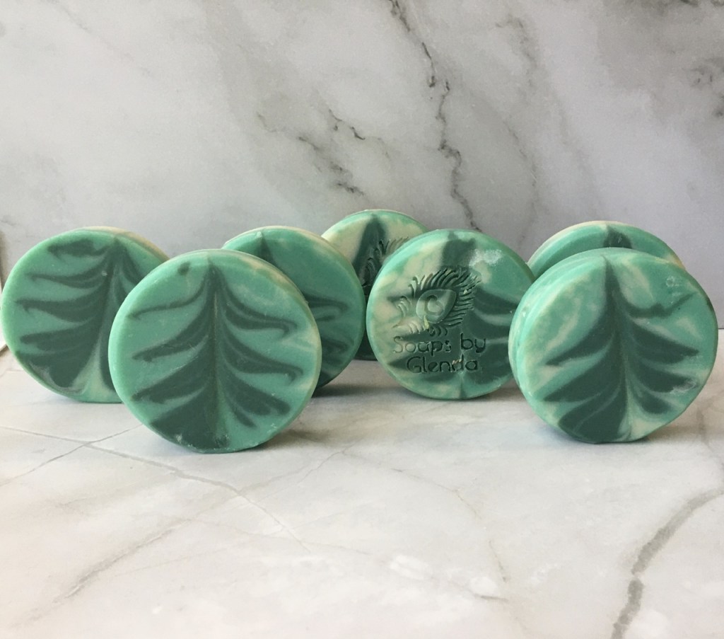 - for 14 oz of soap (1/3): 1/2 tsp Savage Garden green + 1/4 tsp green oxide