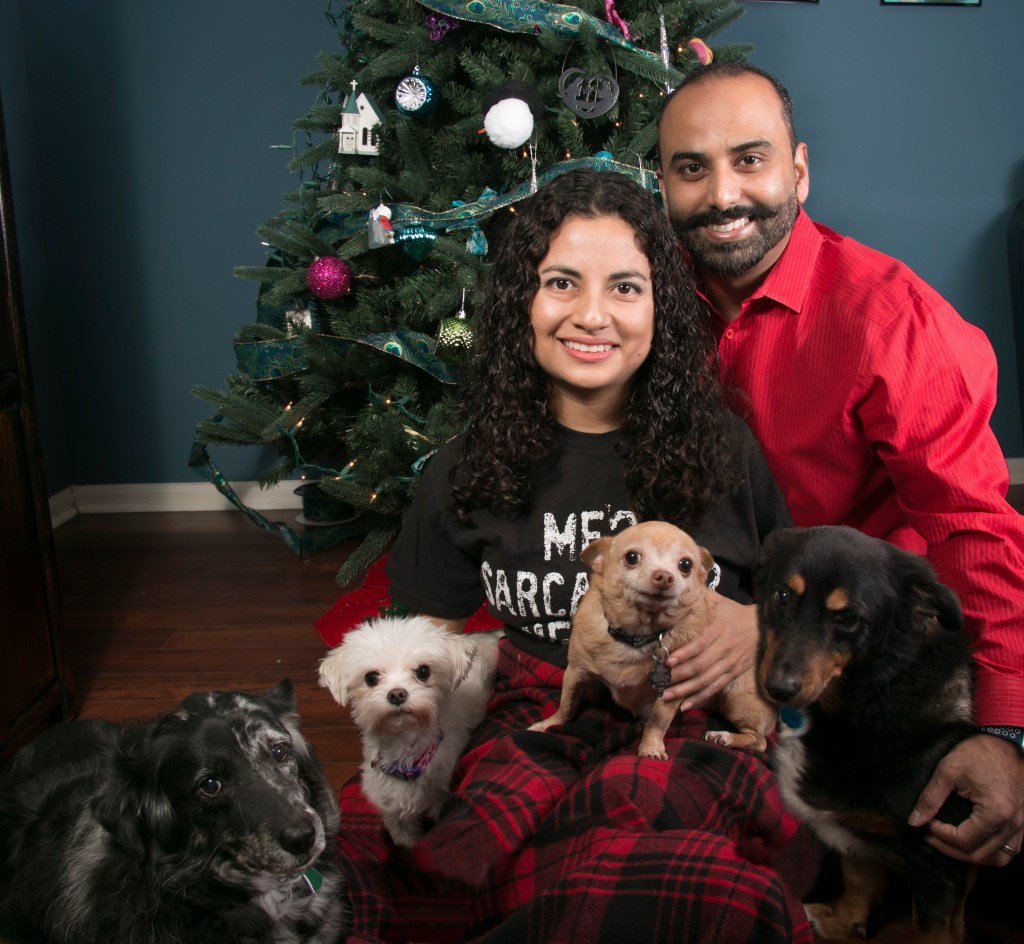 Here is my husband and our dogs.